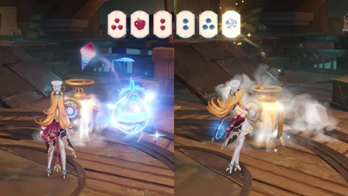 А также геймплейным отрывком из открытого мира, на котором можно увидеть обычные атаки, Элементальный навык и Взрыв стихии девушки: