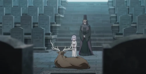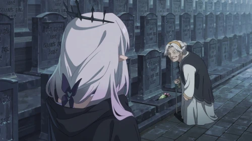 Но реальность иная: перед нами вновь стоит одинокая Кастория. Она снимает с себя плащ и накрывает им могилу умершей, аккуратно обхватывая могильный камень, словно нежно обнимая. Затем она молча уходит в ночь, продолжая свое бесконечное путешествие.