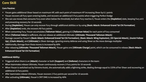 Во время использования Ярости Исюань накапливает «Значения Талисмана». При достаточном их количестве она может выпустить мощную ультимативную атаку «Тысяча Талисманов», наносящую урон, игнорирующий защиту врага.