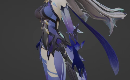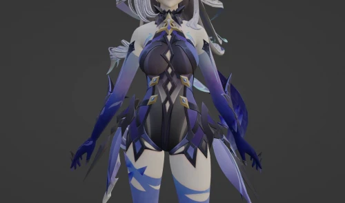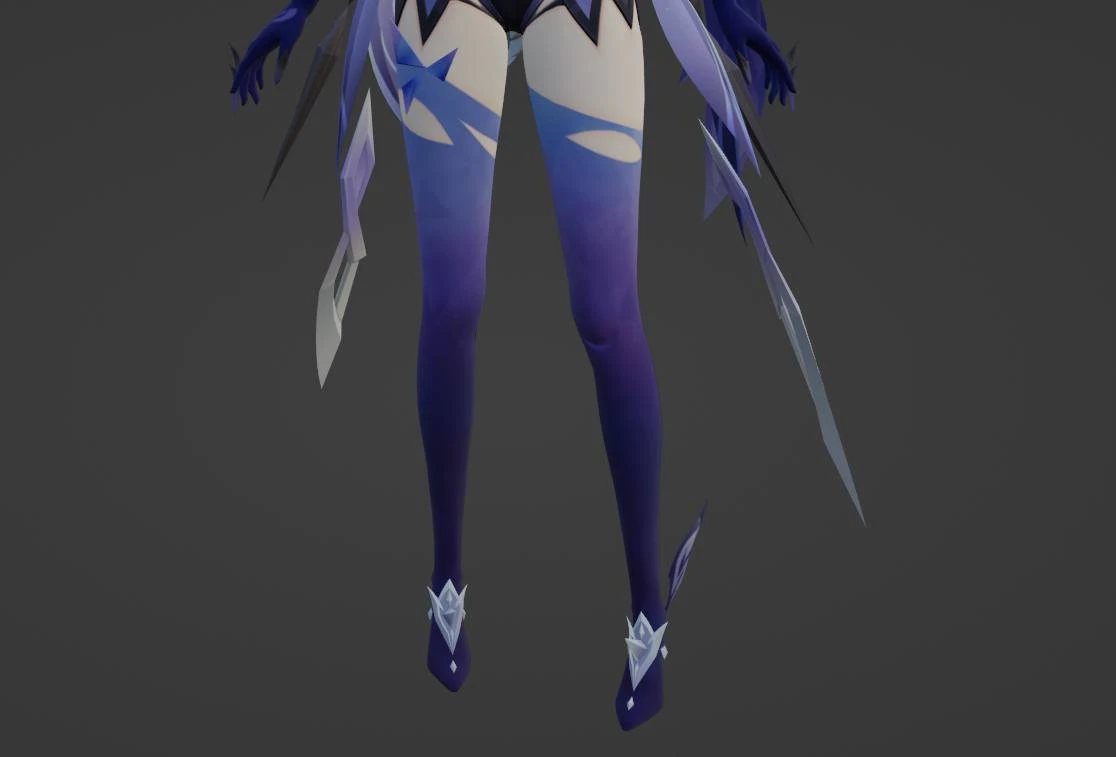 Рендер модели в высоком разрешения впервые появился в бете и демонстрирует Скирк как в ее стандартной экипировке, так и в более темной версии, которая используется при ульте и элементальном навыке.