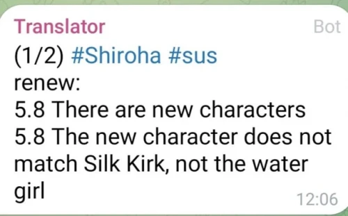 По информации от Shiroha, в Genshin Impact 5.8 выйдет новый персонаж. Он или она не будет героем под Скирк, и не будет той самой Гидро-девушкой, выход которой пророчили инсайдеры ранее. Т.е. возможно это будет девушка, но не Гидро.