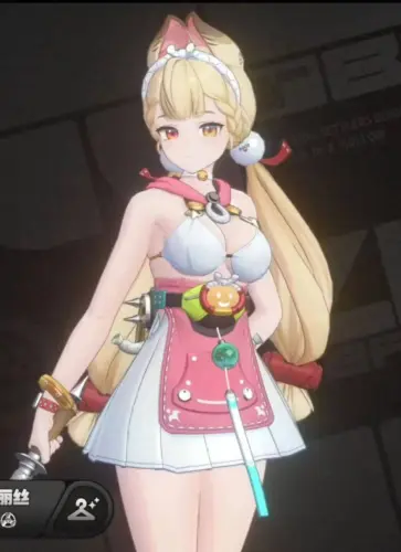 Элис представлена в легком бело-розовом относительно закрытом купальнике с юбкой. Ее аксессуары включают золотые украшения, подвески и летний пояс, а за спиной закреплен миниатюрный водный скутер или серф. Образ дополняют пышные светлые волосы, заплетенные в хвосты, и соответствующая летняя палитра оружия.