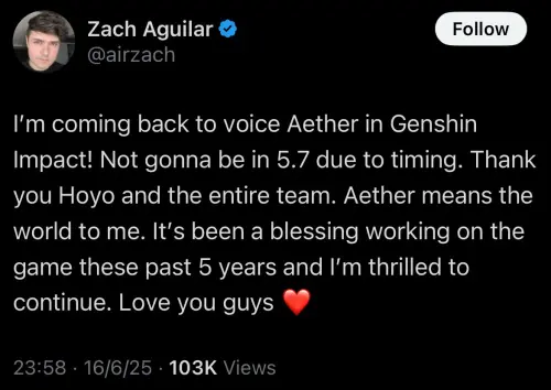 К слову, голос Итэра уже подтвердил свое возвращение в игре после версии 5.8, как и актриса озвучки Люмин. Это вселяет надежду, что и другие актеры со временем вернутся, особенно если вопрос с ИИ-правами решится положительно.