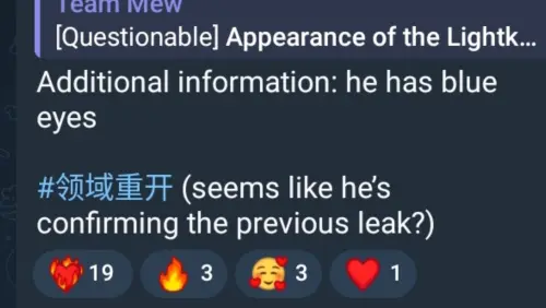 Возможен релиз неизвестного мужского персонажа родом из Нод-Края, который состоит во фракции «Светоносцы». По предварительным сведениям, он имеет 5-звездочную редкость и Электро стихию, однако его оружие неизвестно.