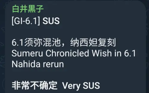 С большой вероятностью разработчики выкатят очередную Молитву хроник, которая на этот раз будет связана с регионом Сумеру. Пока что неизвестно, кто в него войдет. При этом реран Нахиды почему-то выделяется отдельно. Возможно, она получит отдельный баннер, а не будет частью хроник.