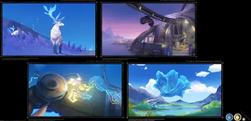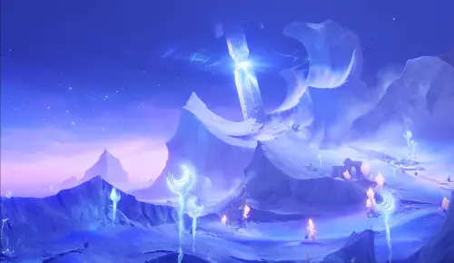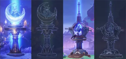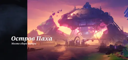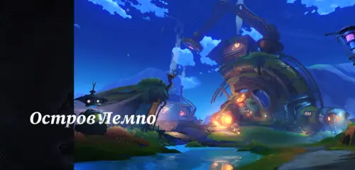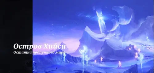 В центре стоит гигантская структура, напоминающая древний монумент или портал. Вокруг него видны светящиеся столбы с лунами, что придает месту мистический характер. Остров Хийси ранее игрокам показали в небольшом тизере жрицы Лаумы на стриме по версии Genshin Impact 5.8.