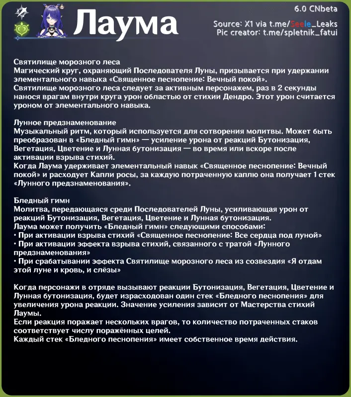 Свежая волна утечек от надежного источника Seele раскрыла полный набор способностей трех новых персонажей из Нод-Край – Айно, Лаумы и Флинс. Все они, по слухам, должны появиться уже в версии 6.0, а судя по попавшим в сеть описаниям, каждый из них может привнести в геймплей что-то интересное.