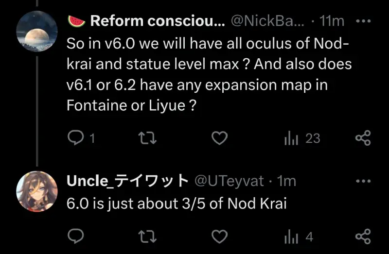 В игровом комьюнити обсуждаются новые сливы от Uteyvat и Seele, которые раскрыли несколько новых подробностей об ожидаемом в Genshin Impact 6.0 регионе Нод-Край.