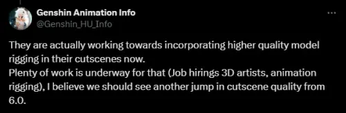 Genshin Animation Info уже раньше намекал на эти изменения, но теперь, когда и другие источники начали подтверждать информацию, инсайдер решил снова напомнить об этом. Если верить утечкам, команда работает над улучшенной системой риггинга моделей для катсцен. Проще говоря, персонажи в сюжетных сценах будут двигаться и выражать эмоции куда реалистичнее.