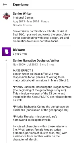 За более чем 12 лет в BioWare Домброу оставил заметный след. Он был старшим сценаристом Mass Effect 3, создавая культовую миссию Priority: Tuchanka, а также персонажей Гарруса и Явика. Позже он работал над дополнением Citadel и Mass Effect: Andromeda, а затем участвовал в Dragon Age Veilguard и Ghost of Yotei от Sucker Punch Productions. Его послужной список – это почти учебник по созданию запоминающихся игровых историй.