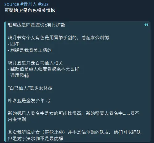 На китайской площадке Tieba появились новые утечки, которые тут же разлетелись по сообществу. Информация звучит любопытно, но источники пока не подтверждены, так что воспринимать все стоит с осторожностью. Тем не менее, из описанного складывается картина довольно интересных будущих героев.