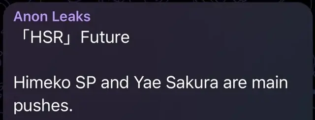 Инсайдер Anon, который неоднократно делился точными утечками по Honkai: Star Rail, поделился новой информацией о планах HoYoverse на будущие обновления. Если верить его словам, разработчики делают основную ставку на двух персонажей – альтернативную форму Химеко и Яэ Сакуру, а также готовят новую сюжетную арку, связанную с Светлячком.