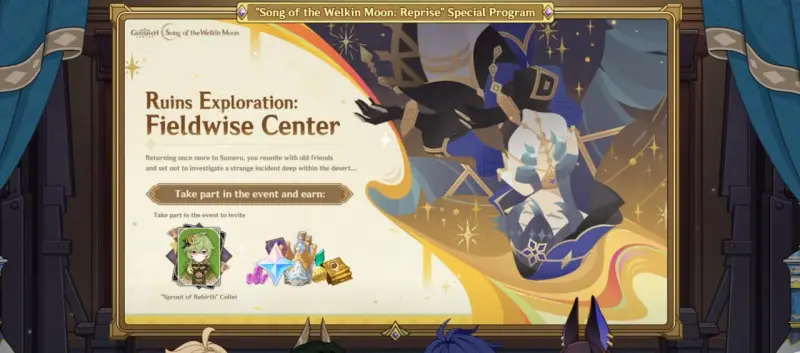 Мы возвращаемся в Сумеру. Лайла, наблюдая за звездами, проваливается в пески и оказывается в древних руинах. Ее ждут странные эффекты и путешественникам предстоит выяснить их природу. В ходе события мы снова встретим Коллеи и Эмбер, которые вместе обучают студентов навыкам выживания. В награду можно будет пригласить Коллеи в отряд.