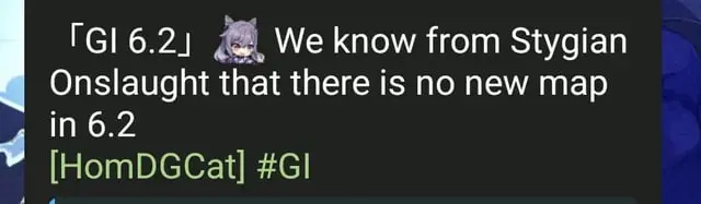 Инсайдер HomDGCat подтвердил сразу в двух сообщениях, что в версии 6.2 не будет новой карты. Такой подход расстроил игроков, которые любят исследовать карту. К тому же, после ранних заявлений разработчиков о расширении других регионов, помимо Нод-Края, многие ждали появления интересных локаций в каждом обновлении.