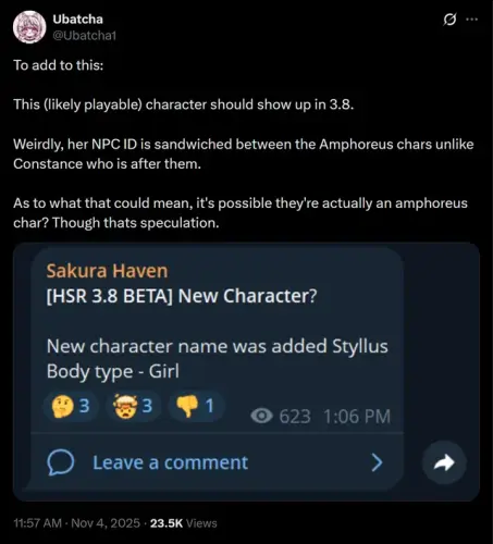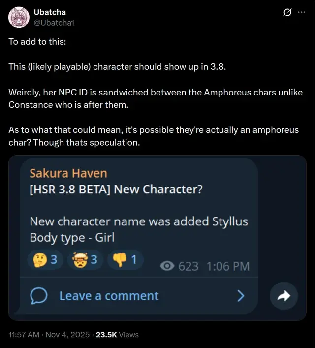 На этом утечки о будущем не заканчиваются. По данным Ubatcha, в бете версии 3.8 нашли новое имя – Стилус (Styllus), которое принадлежит персонажу с женской моделькой типа «девочка».