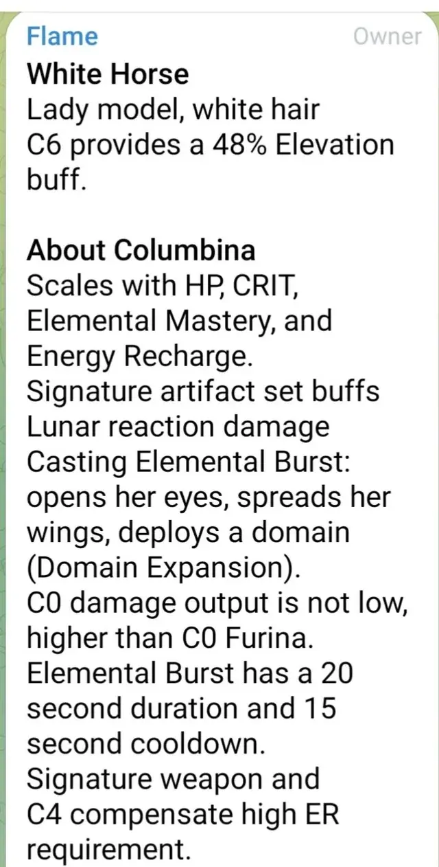Инсайдеры Genshin Impact вновь делятся свежей подборкой сливов о будущих персонажах, которые должны появиться в версии 6.3. На этот раз раскрыты детали сразу о нескольких героях – загадочной женщине-Адепте белой лошади, новом четырехзвездочном персонаже Иллуге.