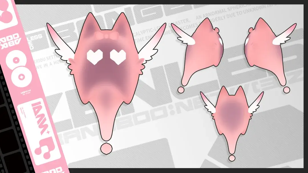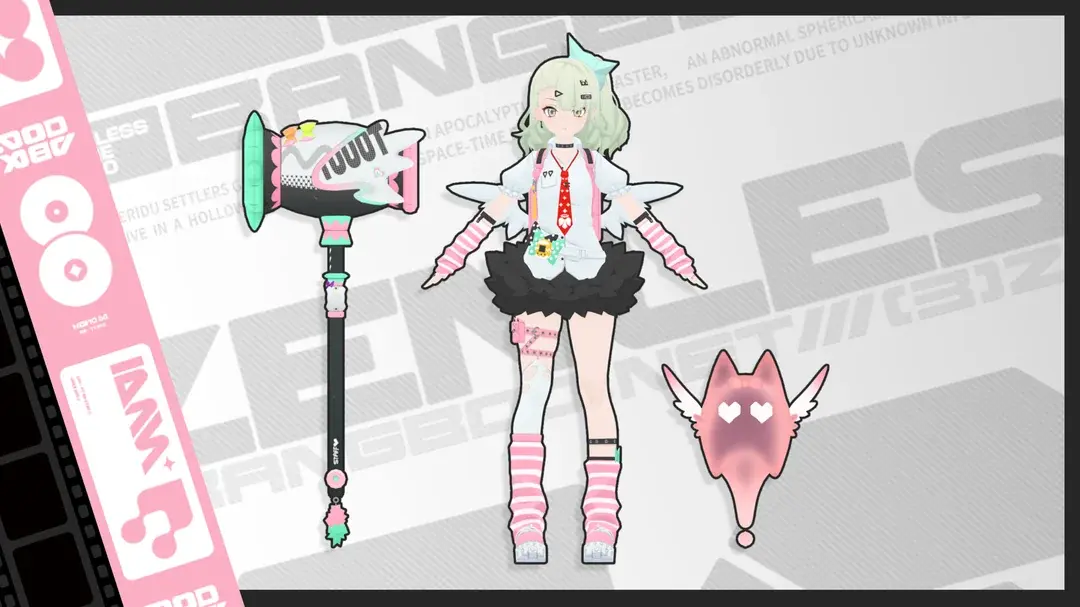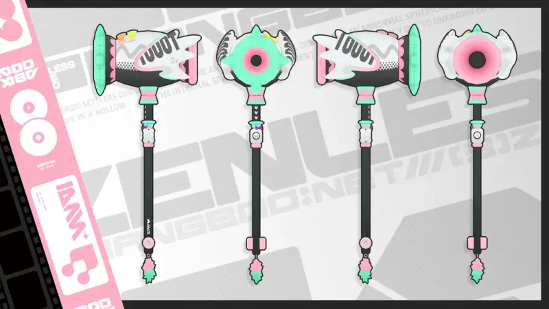 В ассетах отображены несколько вариантов внешнего вида ее оружия – все они выполнены в сочетании пастельных розовых, белых и бирюзовых цветов, органично подходя под образ айдол-персонажа. Так как предыдущие версии моделей отличались, можно предположить, что разработчики постепенно шлифуют дизайн перед релизом