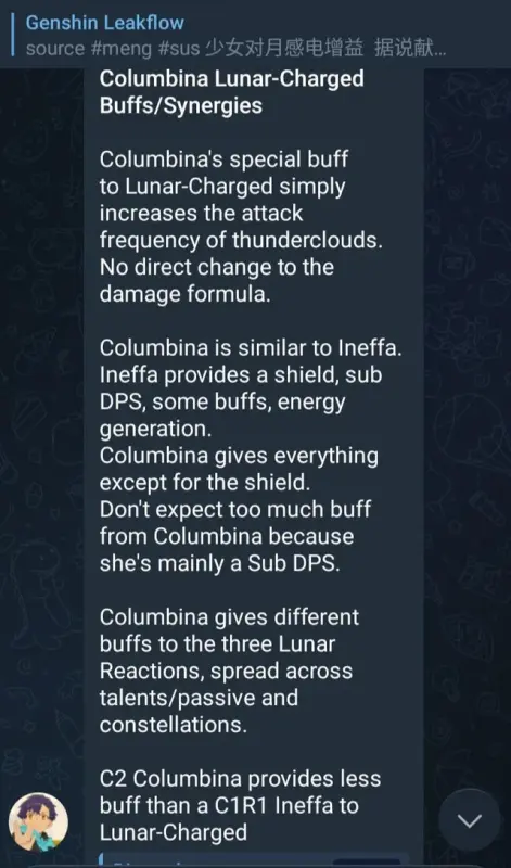 Если утечки подтвердятся, Коломбина станет важным героем для пачек Лунных реакций, но не новой Фуриной, скорее гибким саб-ДПС, который раскрывается лучше всего рядом с персонажами, основанными на Лунных реакциях.