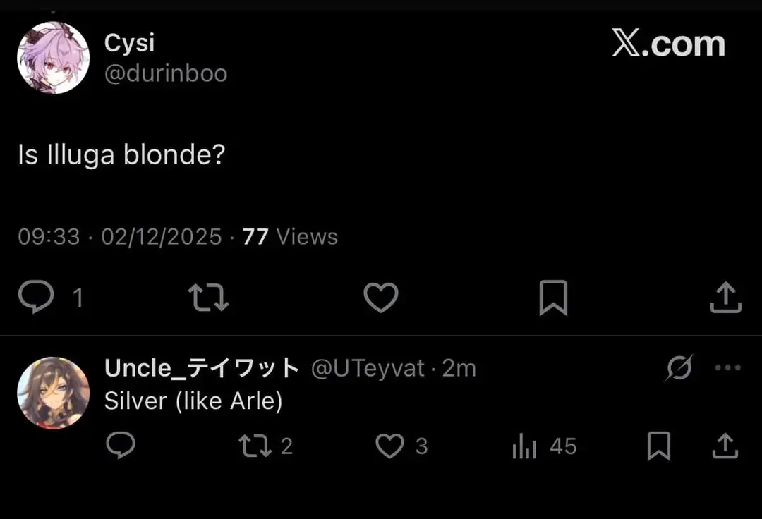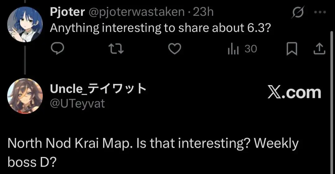 После публикации утечки UTeyvat начали активно расспрашивать в X, пытаясь вытянуть новые детали. Инсайдер ответил на несколько вопросов: