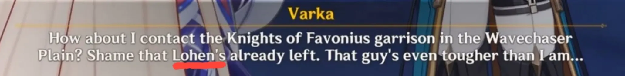 По предварительной информации, Лоэн появится в стандартном баннере. И его Варка уже поминал в сюжете: