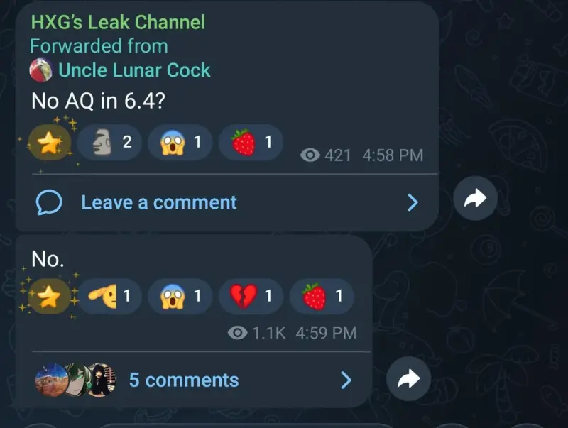 Отдельно инсайдер HXG сообщил, что в версии 6.4 продолжения главного квеста, то есть заданий Архонтов, не будет. Это означает, что обновление, вероятно, сосредоточится на личном квесте Варки, ивентах и побочных сюжетных линиях, а развитие основной истории отложат на более поздний патч.