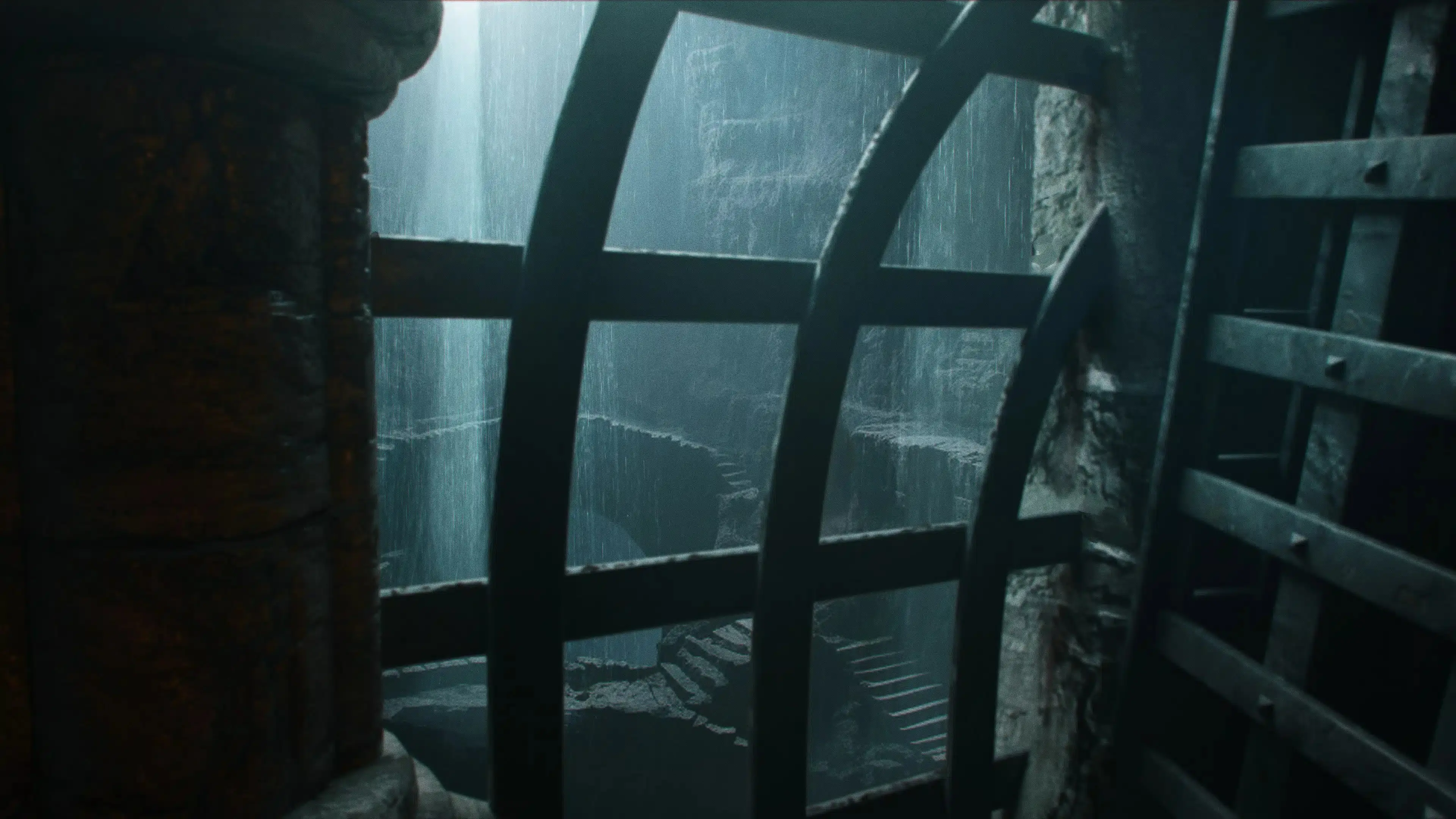 Отдельного внимания заслуживают концепты подземелий. На них главный герой исследует каменные данжи с полуразрушенными стенами, металлическими клетками и завалами. Освещение минимальное – факелы и редкие лучи света сверху, что сразу создает более мрачное настроение.