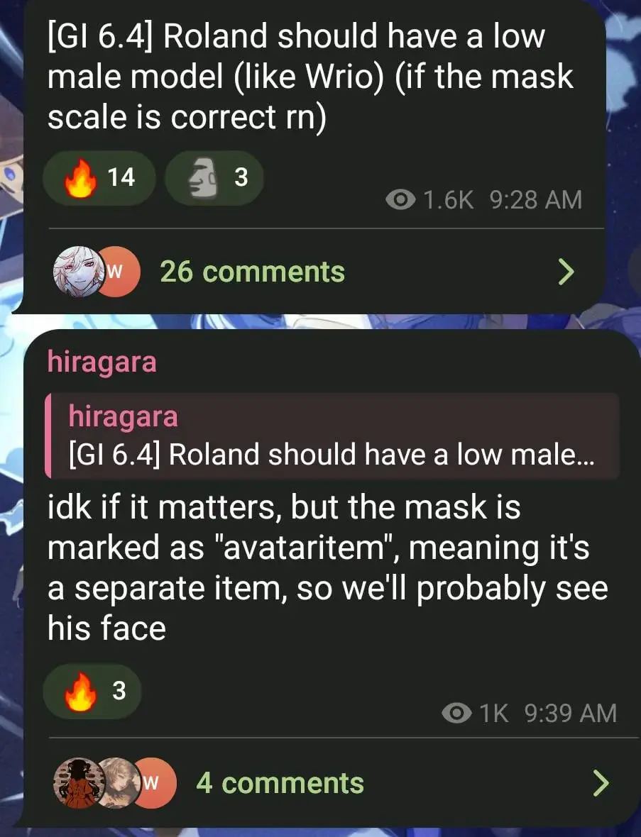 По данным инсайдера Hiragra, Роланд, впервые появится в маске. При этом уточняется, что сама маска помечена в файлах как avataritem – отдельный съемный предмет. Это может означать, что маска не является частью модели по умолчанию, и в игре игроки, скорее всего, смогут увидеть лицо Роланда, когда он эту маску снимет.
