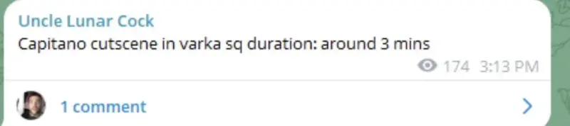По данным инсайдера Uncle Lunar Cock, Капитано появится в сюжетной кат-сцене в задании Варки. Сообщается, что ее продолжительность составит около трех минут, что по меркам Genshin Impact довольно много.