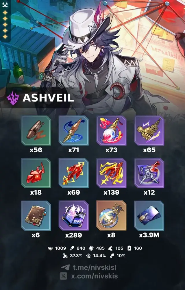 Отдельный блок утечек связан с прокачкой. Инсайдер niviskis опубликовал карточки развития Эшвейла, а также его сигнатурного светового конуса. На изображениях представлены материалы, необходимые для возвышения и улучшения, а также базовые параметры. Хотя конкретные значения еще могут быть изменены до релиза, сами карточки уже дают представление о том, к чему стоит готовиться игрокам, планирующим выбивать персонажа.