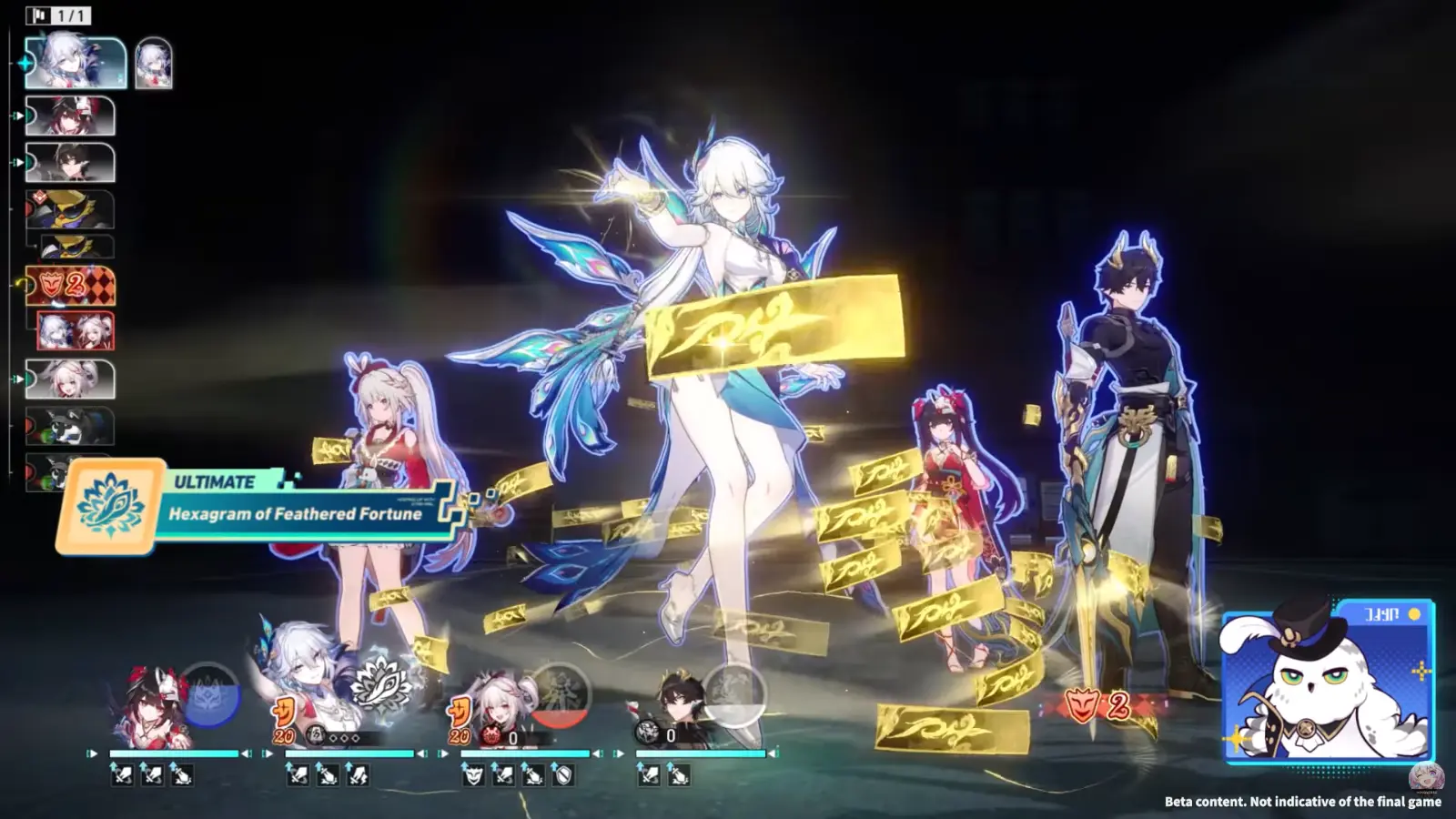 Сверхспособность Яо Гуан раздает Юмор союзникам, повышает пробитие сопротивлений и, что самое важное, дает Ахе дополнительный ход, позволяя немедленно активировать еще один Миг Ахи без расхода Юмора. Это превращает ее в катализатор всей стратегии Пути Радости и делает незаменимой в командах, завязанных на этой механике.