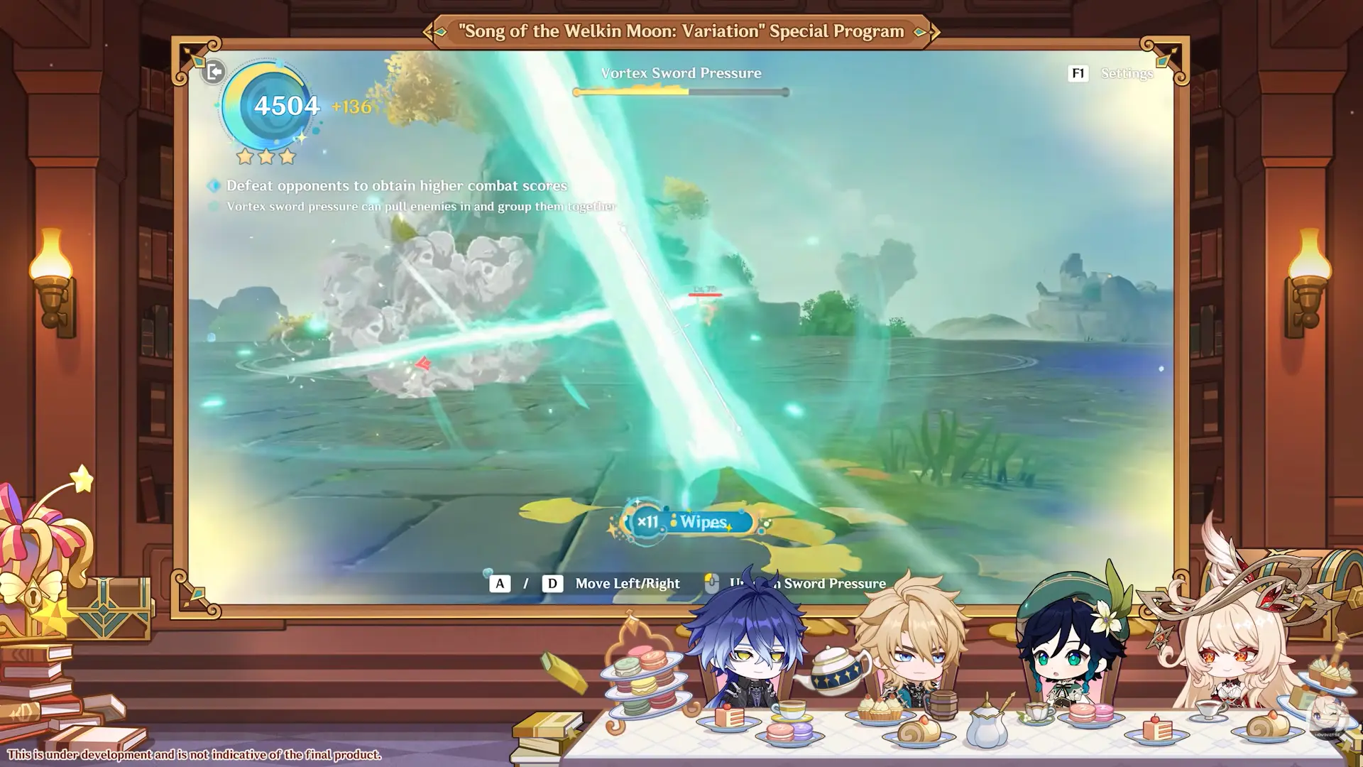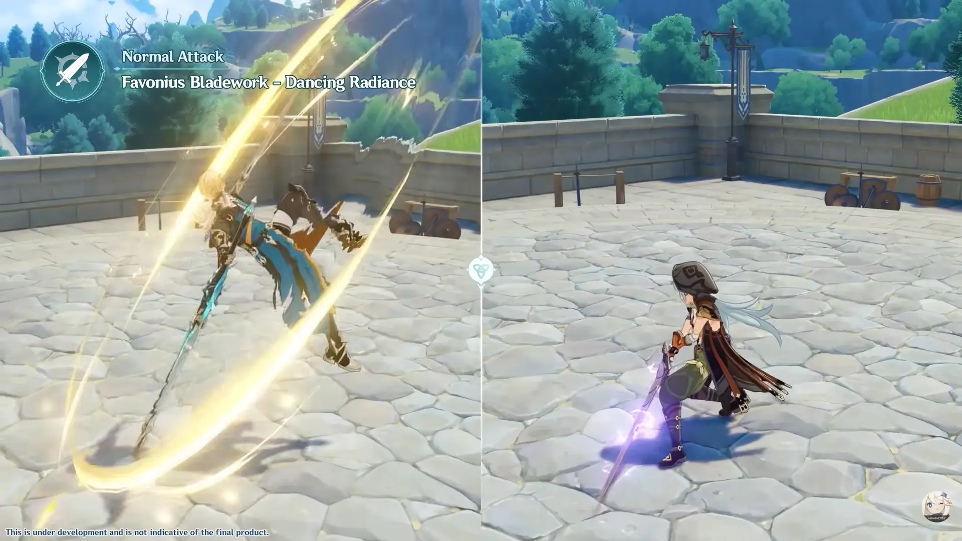 По механикам он использует парные мечи и фехтовальный стиль Фавония. Левая рука всегда наносит Анемо-урон, а правая получает элемент в зависимости от состава отряда. Это делает его зависимым от синергии команды.