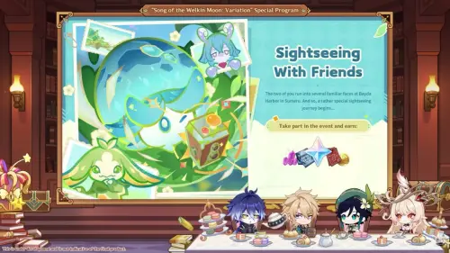 Ивент связан с путешествием по разным регионам, Сумеру, Натлану и Фонтейну, в компании друзей-плесенников. Вам будет нужно использовать специальную камеру, чтобы запечатлеть знаковые места. В некоторых маршрутах нужно ловить правильный момент и ракурс прямо во время движения. Это расслабленный режим, рассчитанный на исследование и красивые виды.