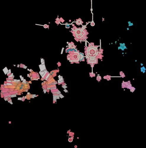 Новые материалы раскрывают более мрачную и загадочную атмосферу второй локации. На изображениях видны руины города-крепости, встроенные в гигантские вертикальные скалы или кристаллические структуры. Отдельные кадры и скриншоты показывают другую часть Пространства Асмодей – небесный дворец, парящий среди облаков. Архитектура сочетает массивные купола, шпили и подвесные мосты, соединяющие отдельные острова.