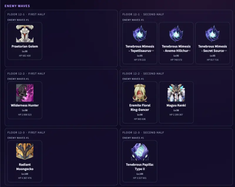 Отдельная утечка от Nanoca раскрыла врагов и благословения 12 этажа Спиральной Бездны.