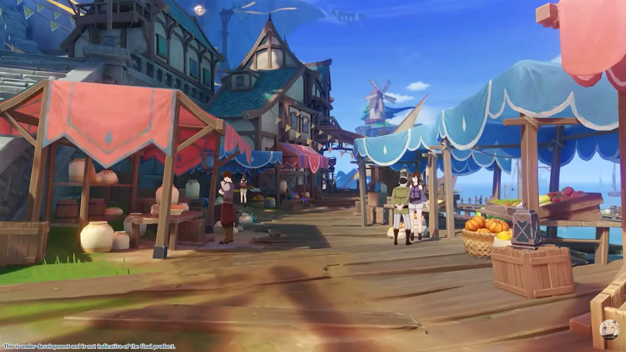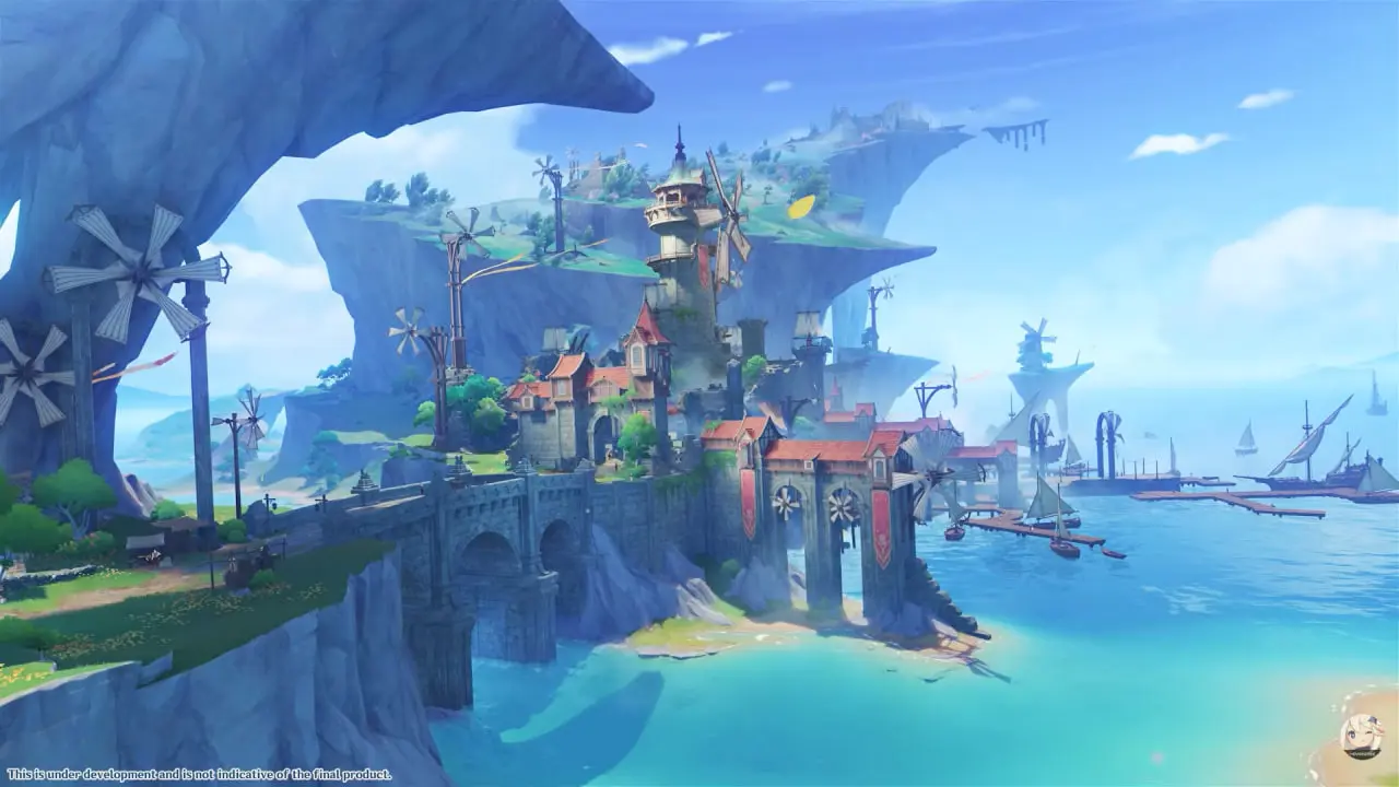 На стриме показали, как Путешественник проходит через цветочные поля и выходит к самому порту, это полноценная открытая локация с собственной историей, NPC и заданиями. Атмосфера у нее заметно отличается от центральных районов Мондштадта, хоть и сохраняет его дух.