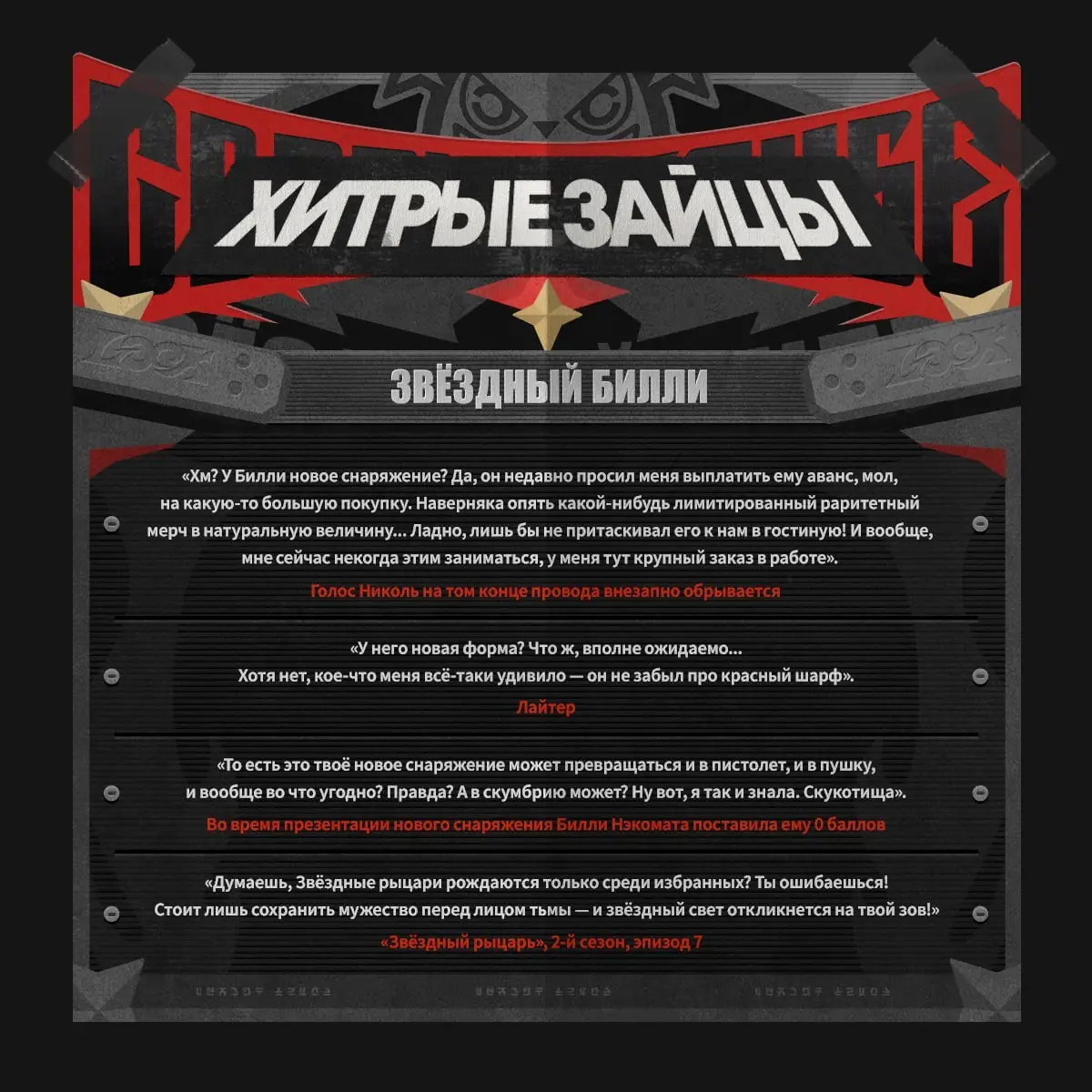 Согласно анонсу, Звездный Билли сохраняет физический атрибут и относится к специализации Разрушение. В тизере разработчики подчеркнули его фирменную манеру подачи: персонаж в шутливой форме представляется как звездный рыцарь, который просто проходил мимо, после чего пытается выдать пафосное вступление, но сбивается и в итоге переходит к своей привычной комичной подаче. Такой тон полностью соответствует образу Билли
