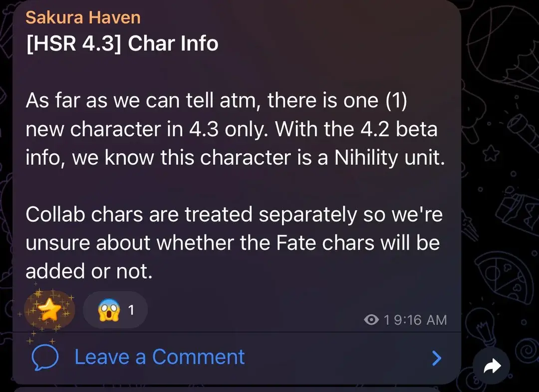 Отдельно Sakura Haven уточняет, что герои из возможных кроссоверов рассматриваются разработчиками отдельно от основного пула персонажей. Это означает, что даже если в 4.3 действительно появятся персонажи из Fate, они могут не учитываться в числе основных новых героев патча.