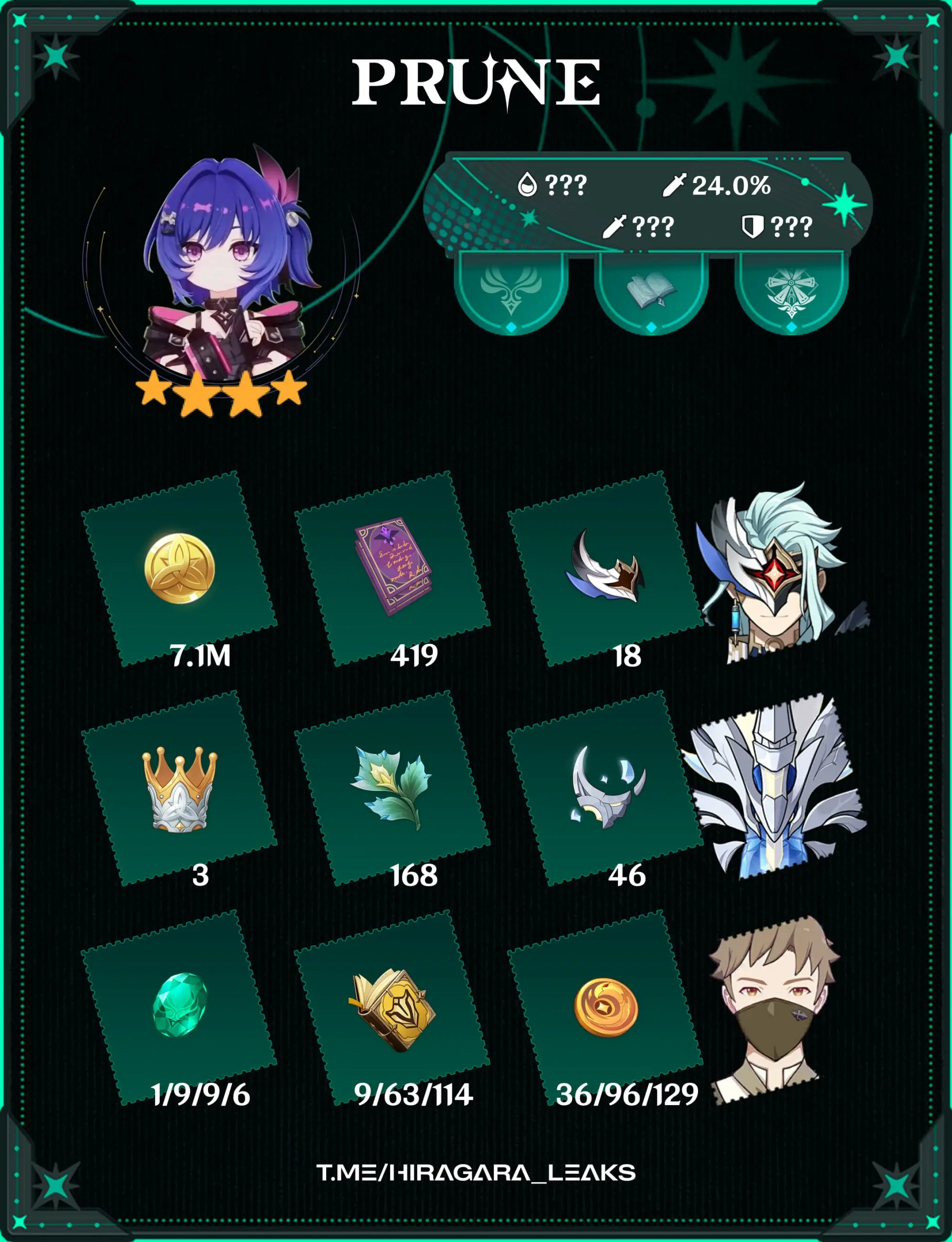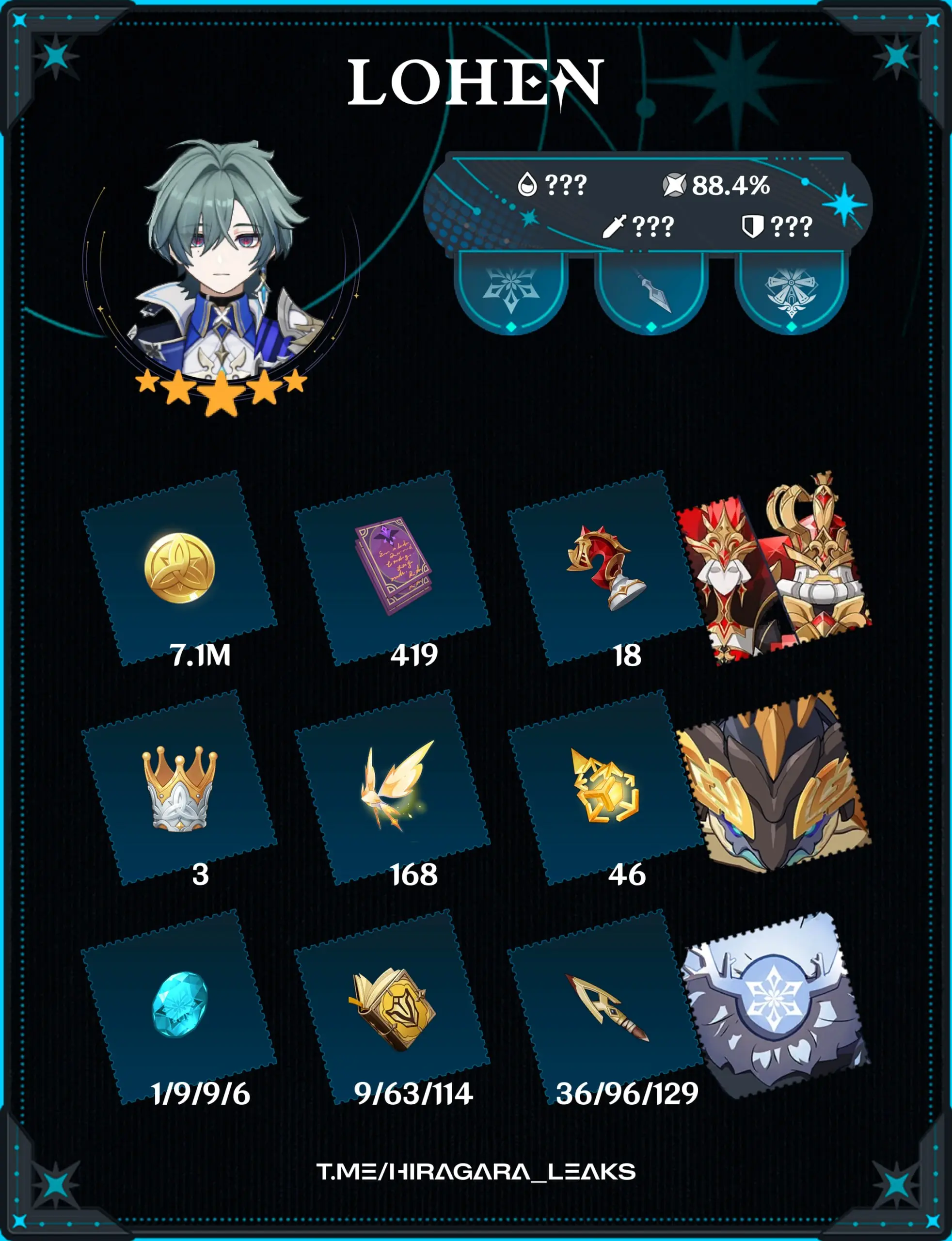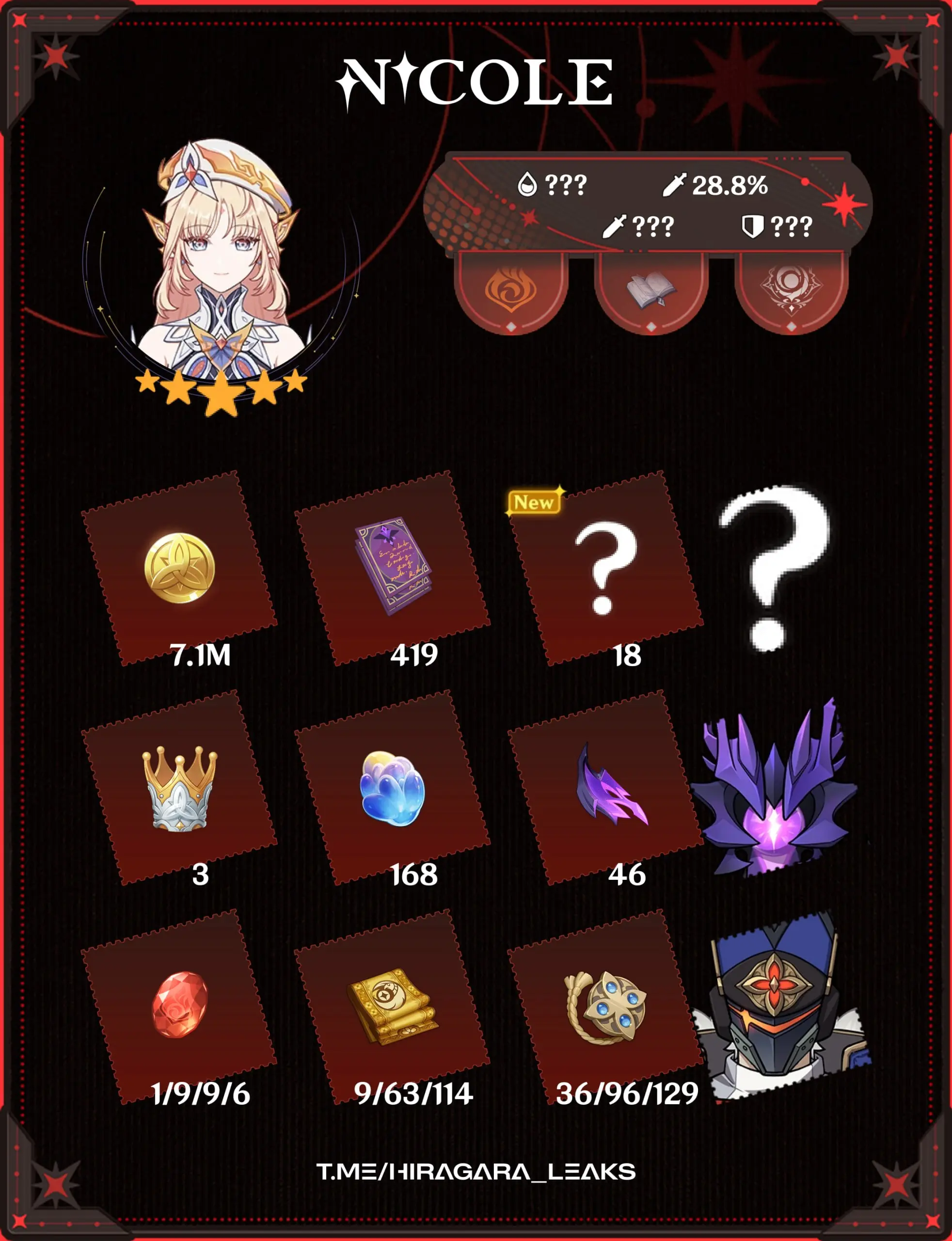 Вторая часть утечек от Hiragra показала материалы для возвышения и развития талантов всех героев, а также характеристики и прокачку сигнатурного оружия для Лоэна и Николь.
