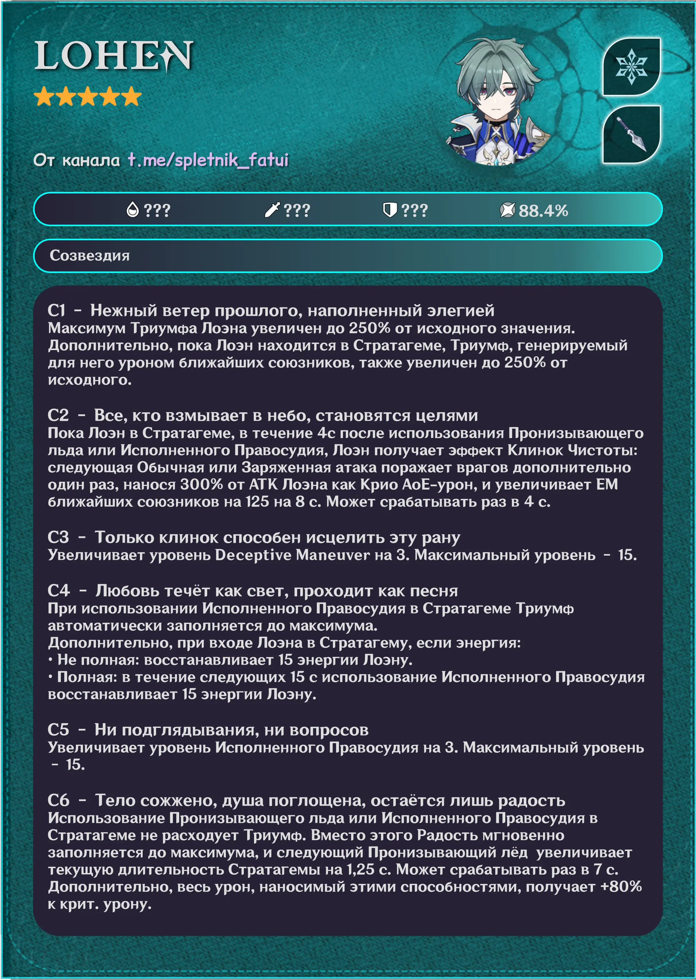 С приближением нового патча утечки по Genshin Impact становятся все более наглядными. На этот раз инсайдеры делятся полноценными карточками с описанием способностей, прокачкой и сигнами для будущих персонажей. Речь идет сразу о нескольких героях, которые могут появиться в версии 6.6: Лоэн, Николь и Прюн.