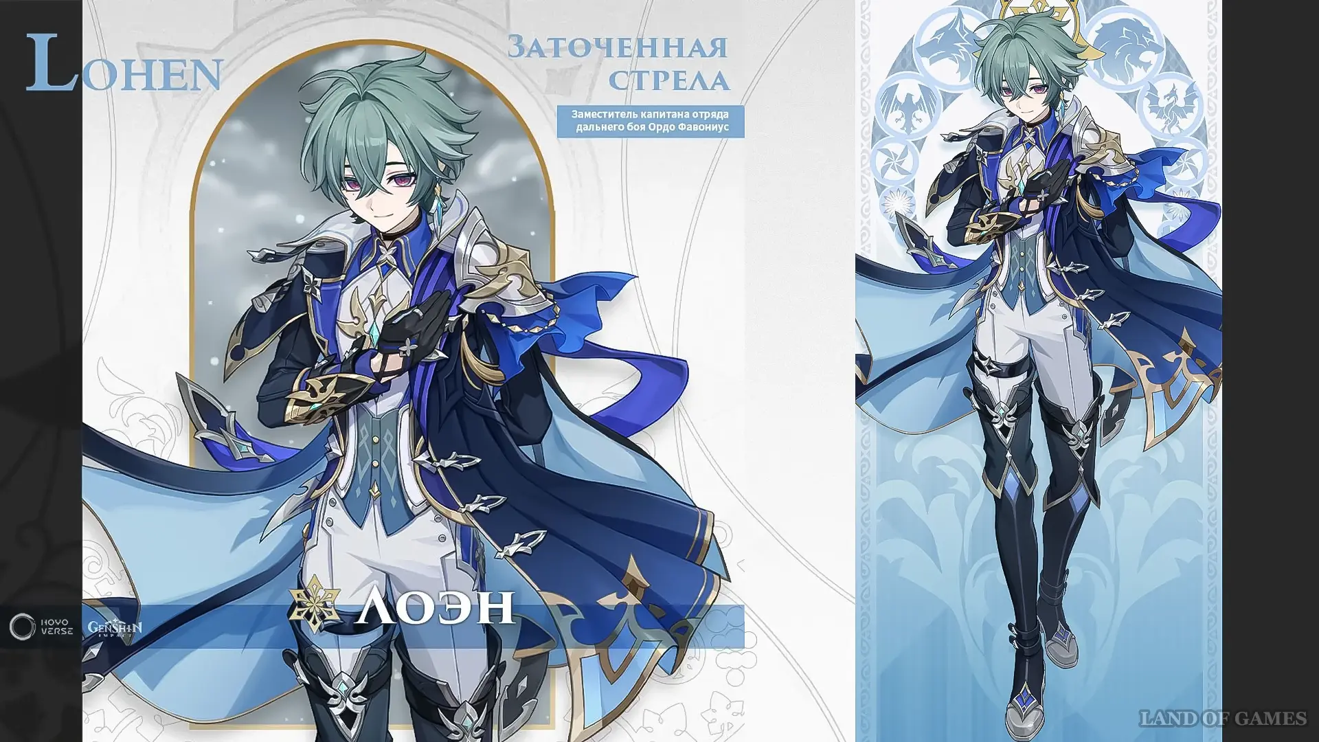 Вслед за анонсом ведьмы Николь, в Genshin Impact официально представили Лоэна (5★/ крио, копье) – молодого зам. капитана отряда дальнего боя Ордо Фавониус, носящего титул «Заточенная стрела».