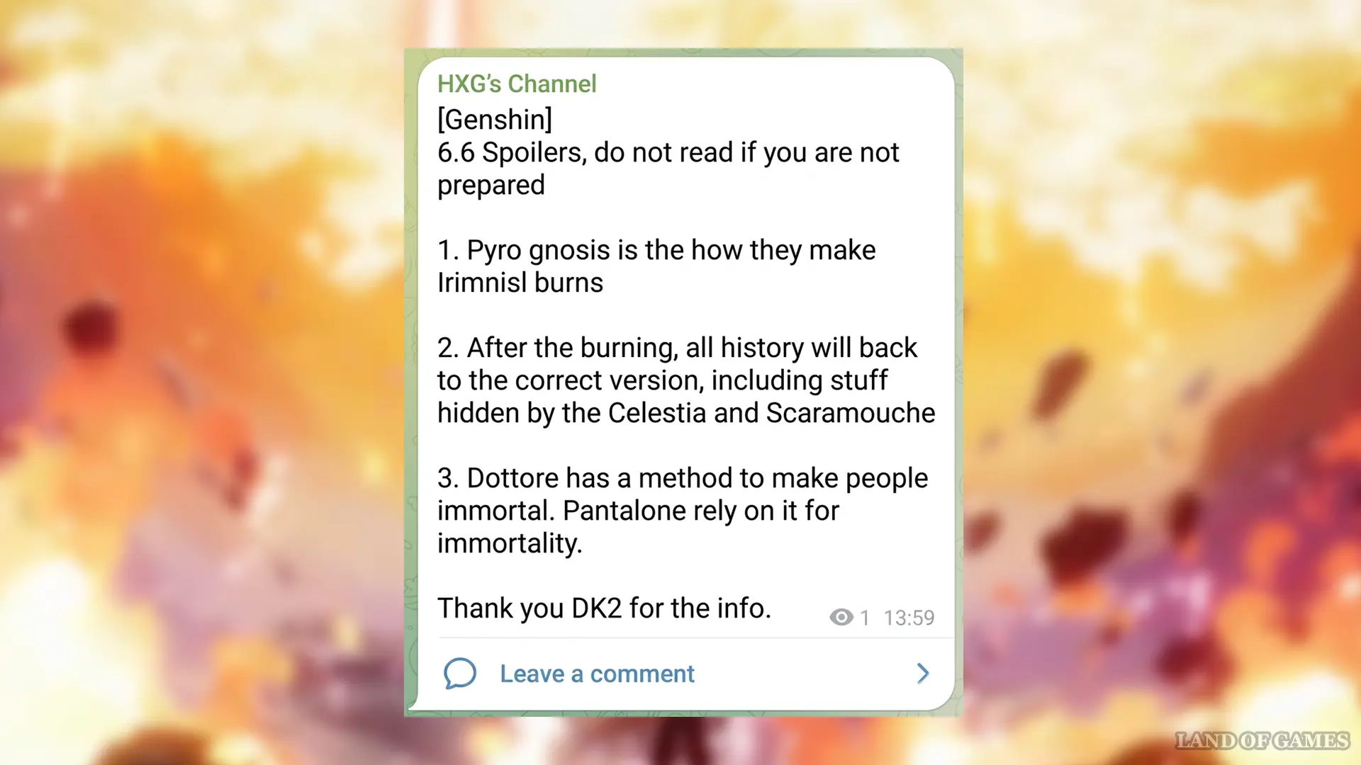 Согласно утечкам, в 6.6 произойдет сожжение Ирминсуля, на котором используют силу Пиро Сердца Бога.