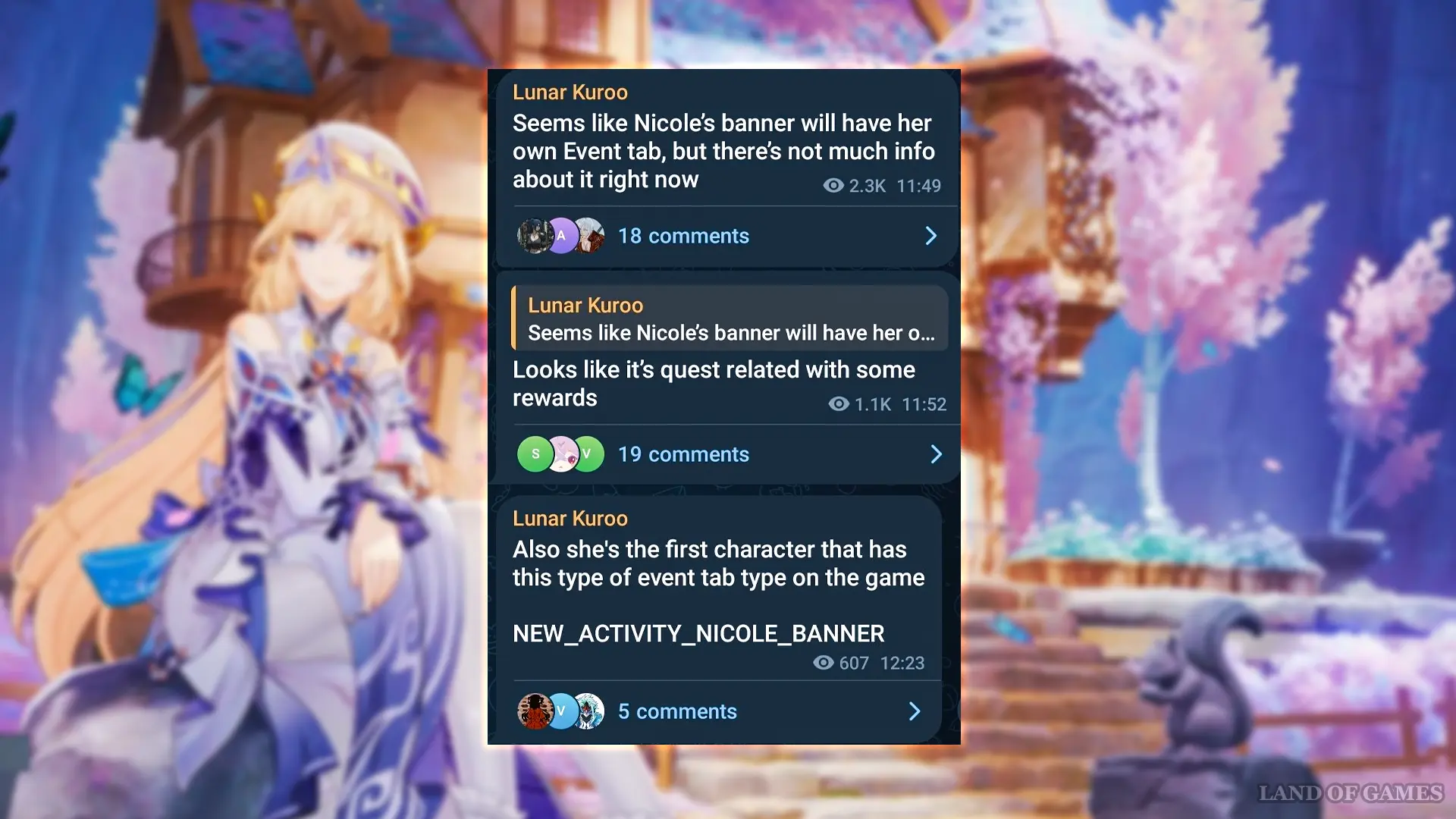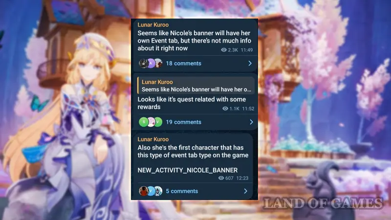 По данным инсайдера, ключевым новшеством станет внедрение персональной вкладки событий, привязанной к периоду действия молитвы персонажа. Обнаруженная в коде строка NEW_ACTIVITY_NICOLE_BANNER подтверждает разработку уникального формата активности, который ранее никогда не использовался в игре. Также упоминается, что получение Николь будет сопровождаться уникальными квестами или дополнительными наградами, доступными только во время действия ее баннера.