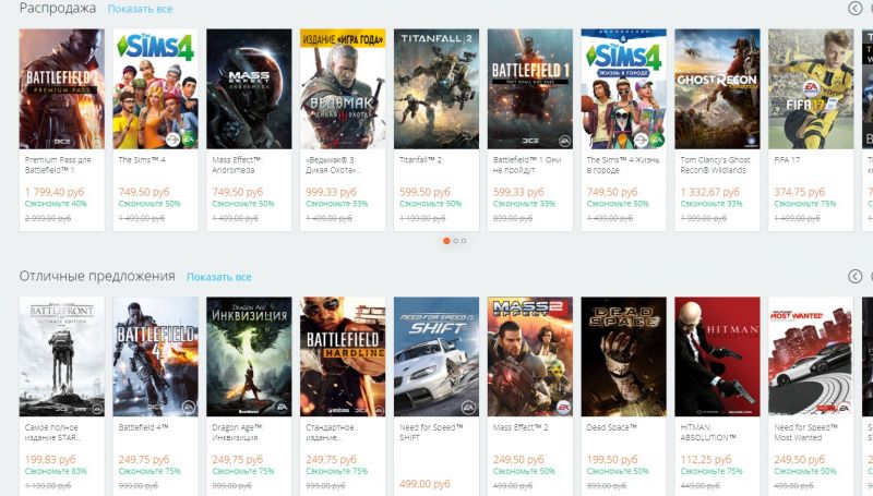 К примеру, за полное издание Star Wars Battlefront со всеми дополнениями нужно заплатить всего 200 рублей, а Mass Effect: Andromeda стоит сейчас всего 750 рублей (напомним, что лишь несколько месяцев назад она продавалась за 2000 рублей). Большие скидки получили также игры из сери FIFA и Battlefield.