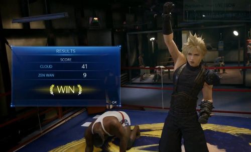 Затем разработчики показали мини-игру с приседаниями и битву с боссом по имени Апс. Тифа, Клауд и Аэрис бьются с ним, находясь в канализационной системе Мидгара. На опубликованных кадрах Аэрис атакует врага издалека, применяя иногда особые умения. Клауд в определенный момент призывает Ифрита, используя Материю.