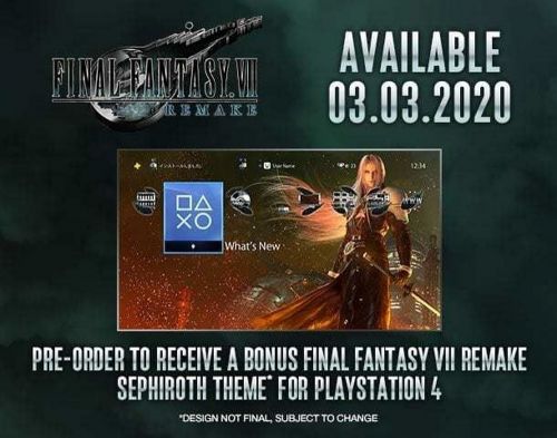 Затем они разместили тестовый образец динамической темы для обладателей PlayStation 4, которая будет бесплатно выдана всем игрокам, купившим ремейк в магазине Amazon. Было также сообщено, что в торговой точке Animate, расположенной в Токио, начнется выставка, посвященная игре. На ней можно будет сфотографироваться на фоне мотоцикла Клауда.