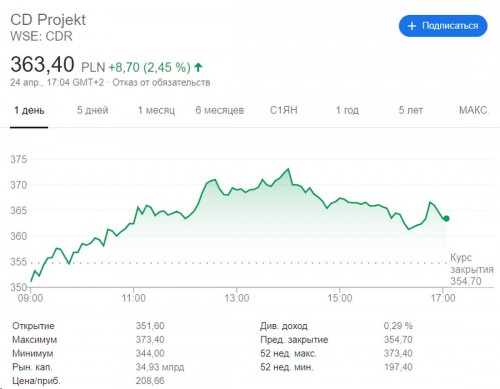 Одна акция польского разработчика игр стоит 86,4 доллара, а вся компания в целом оценивается в 8 миллиардов 300 миллионов долларов. Еще немного и она сможет обогнать французское издательство Ubisoft (Assassin’s Creed, Far Cry, The Division), капитализация которого составляет 8 миллиардов 920 миллионов долларов.