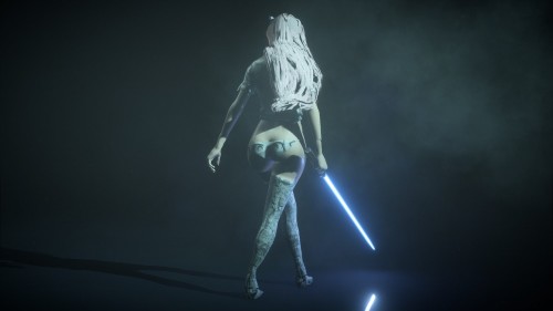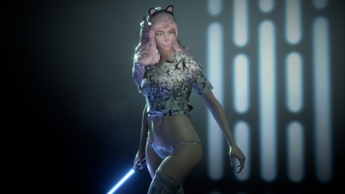 Вторая работа создана для сетевого шутера Star Wars Battlefront II. Она заменяет стандартный облик Рей на блогершу, одетую в откровенный наряд и носящую кошачьи ушки. Загрузить эту модификацию тоже можно на nexusmods.com.