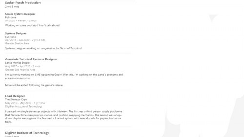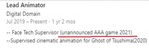 Разработчик с лета прошлого года занимался курированием новой технологии по созданию лиц для загадочной игры ААА-уровня. Ее релиз запланирован уже на следующий год. Затем поклонники решили проверить страничку системного дизайнера студии. На ней отмечено, что до середины лета текущего года он работал над Ghost of Tsushima, а затем переключился на «крутой проект, о котором ему нельзя ничего рассказывать».