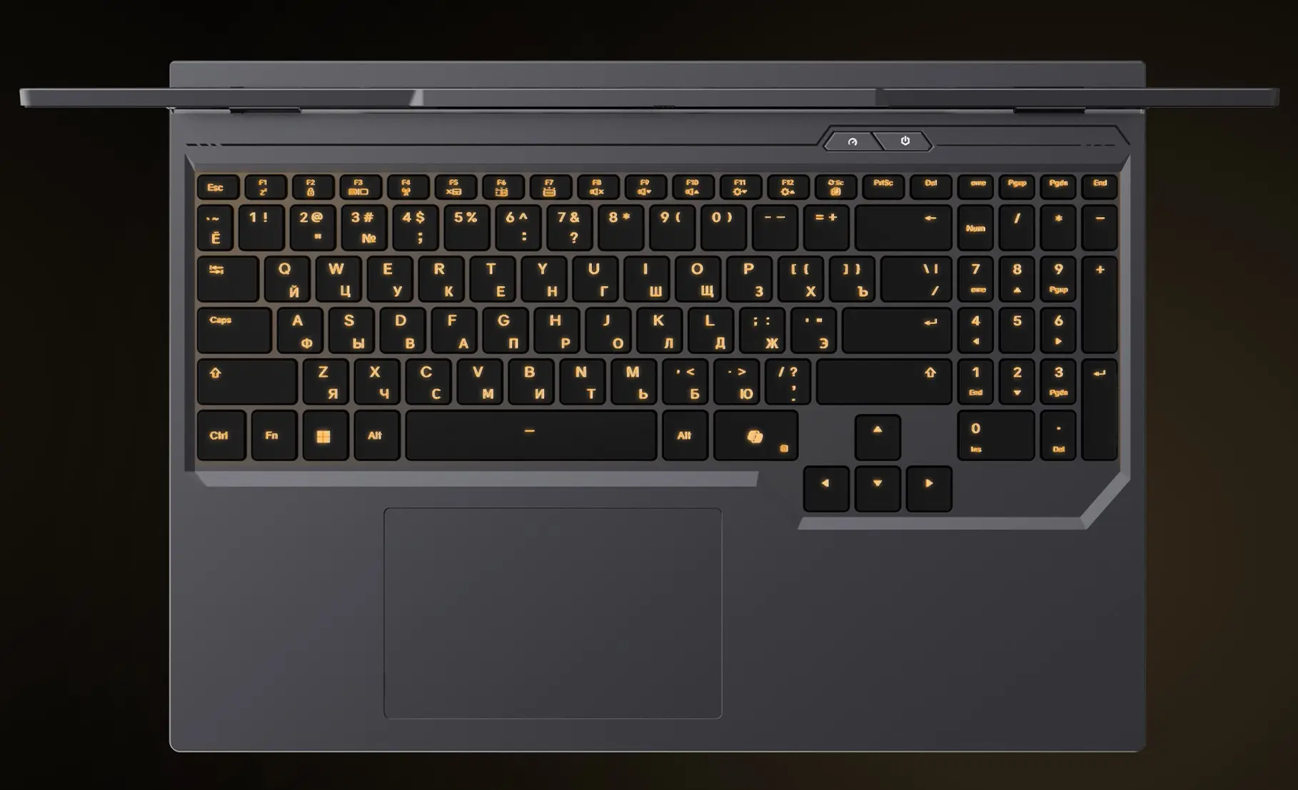 MAIBENBEN X16F оснащен полноразмерной клавиатурой с цифровым блоком и настраиваемой RGB-подсветкой. Навигационные клавиши вынесены в отдельную зону, что повышает удобство как в играх, так и при повседневной работе.