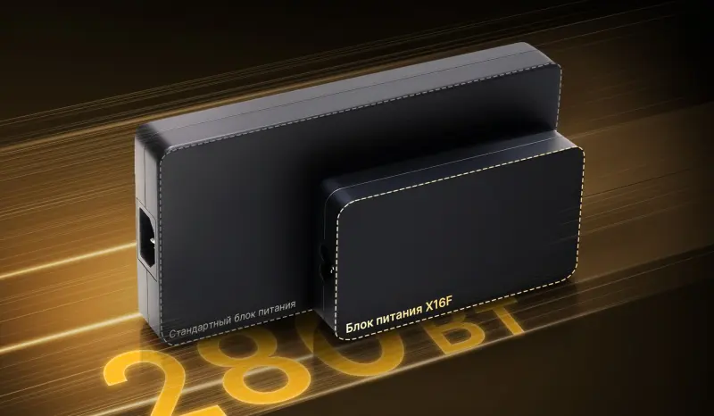 MAIBENBEN X16F оборудован аккумулятором емкостью 5200 мА•ч (80 Вт•ч) с поддержкой быстрой зарядки. В комплекте поставляется компактный блок питания мощностью 280 Вт, уменьшенный по сравнению с традиционными адаптерами. Для дополнительного удобства в поездках предусмотрена возможность зарядки через разъем USB Type-C мощностью до 140 Вт.
